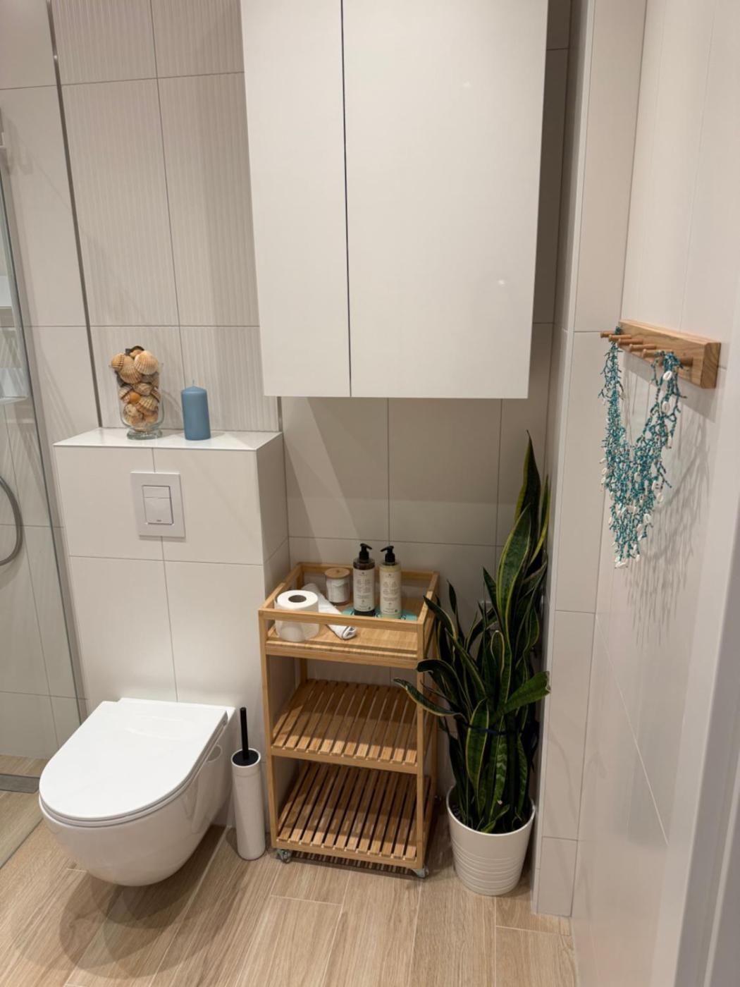Wyposażenie obejmuje również lodówkę, ekspres do kawy i czajnik.