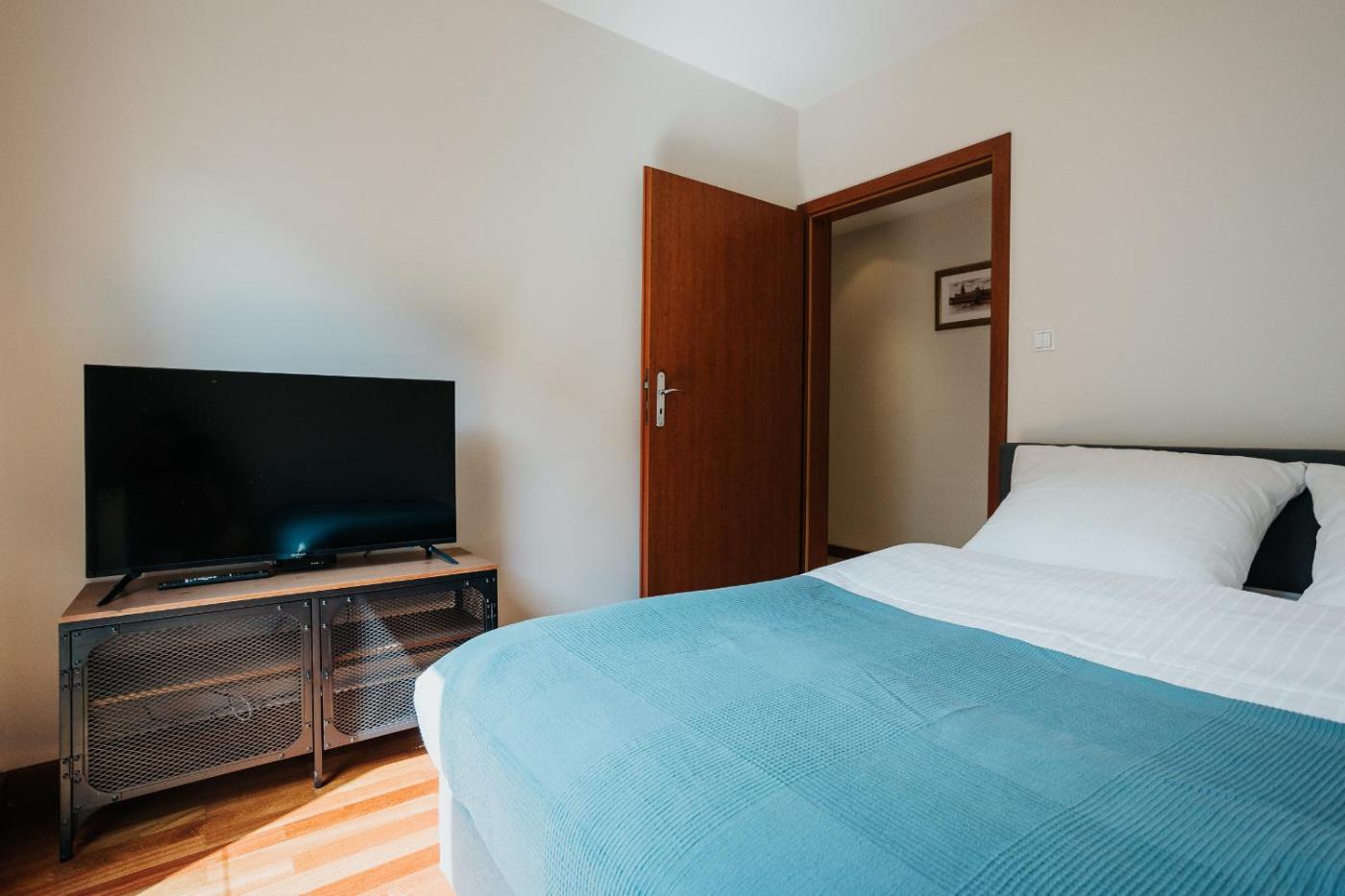 Apartament z 2 sypialniami. This apartment is comprised of 1 living room, 2 separate bedrooms and 1 bathroom with a shower and a hairdryer. The fully equipped kitchen features a stovetop, a refrigerator, a dishwasher and kitchenware. The apartment offers a washing machine, soundproof walls, a tea and coffee maker, a flat-screen TV with satellite channels, as well as city views. The unit offers 3 beds. Apartament - 6 osobowy. Powierzchnia pokoju ok.: 60 mkw.