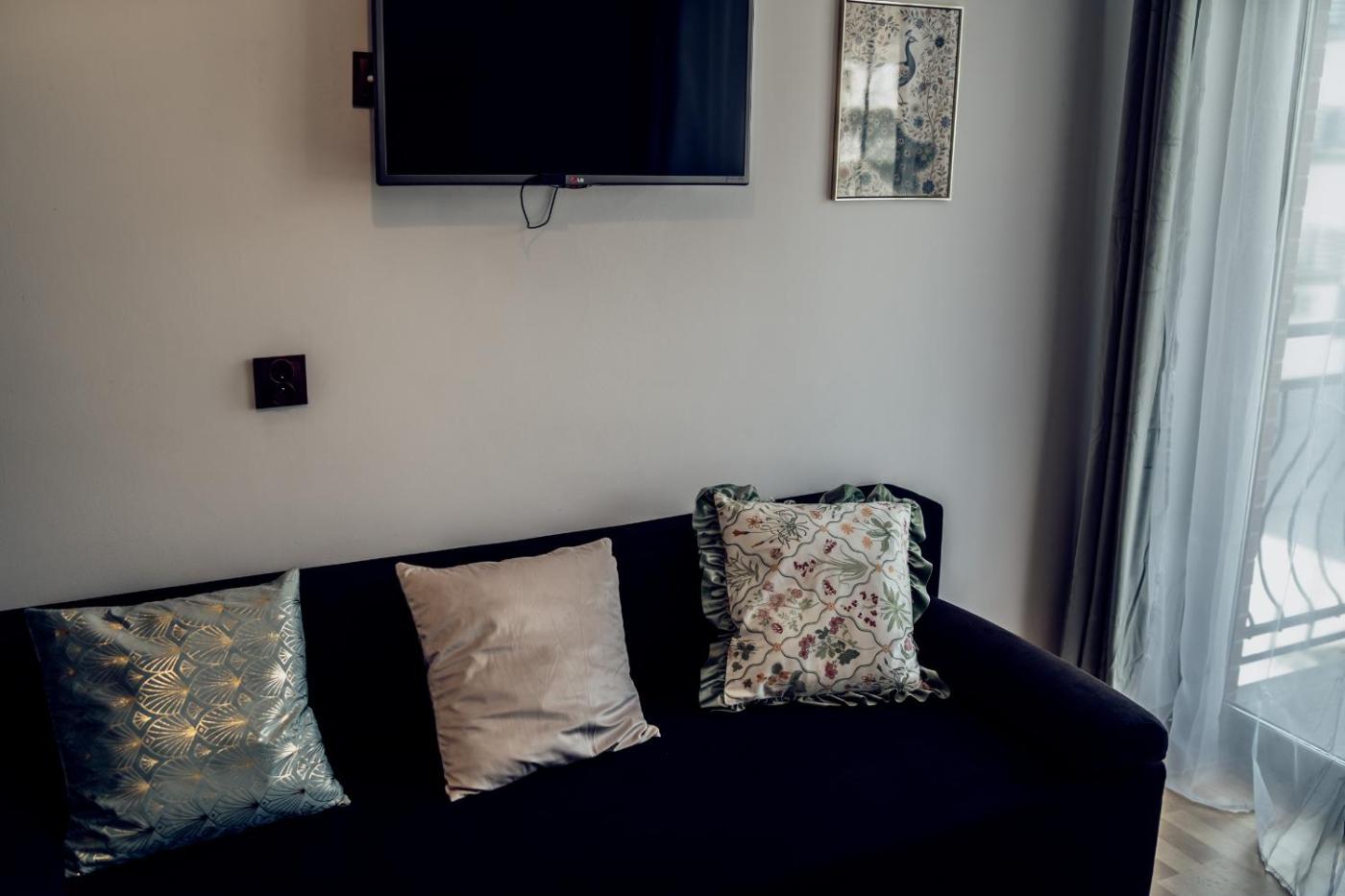 Rodzinny apartament typu Studio. The studio features a barbecue, a sofa, as well as a private bathroom featuring a shower. The studios kitchenette, which features a refrigerator and kitchenware, is available for cooking and storing food. The studio provides a dining area, a wardrobe, an electric kettle, a flat-screen TV with cable channels, as well as city views. The unit offers 3 beds. Studio - 5 osobowy. Powierzchnia pokoju ok.: 38 mkw.