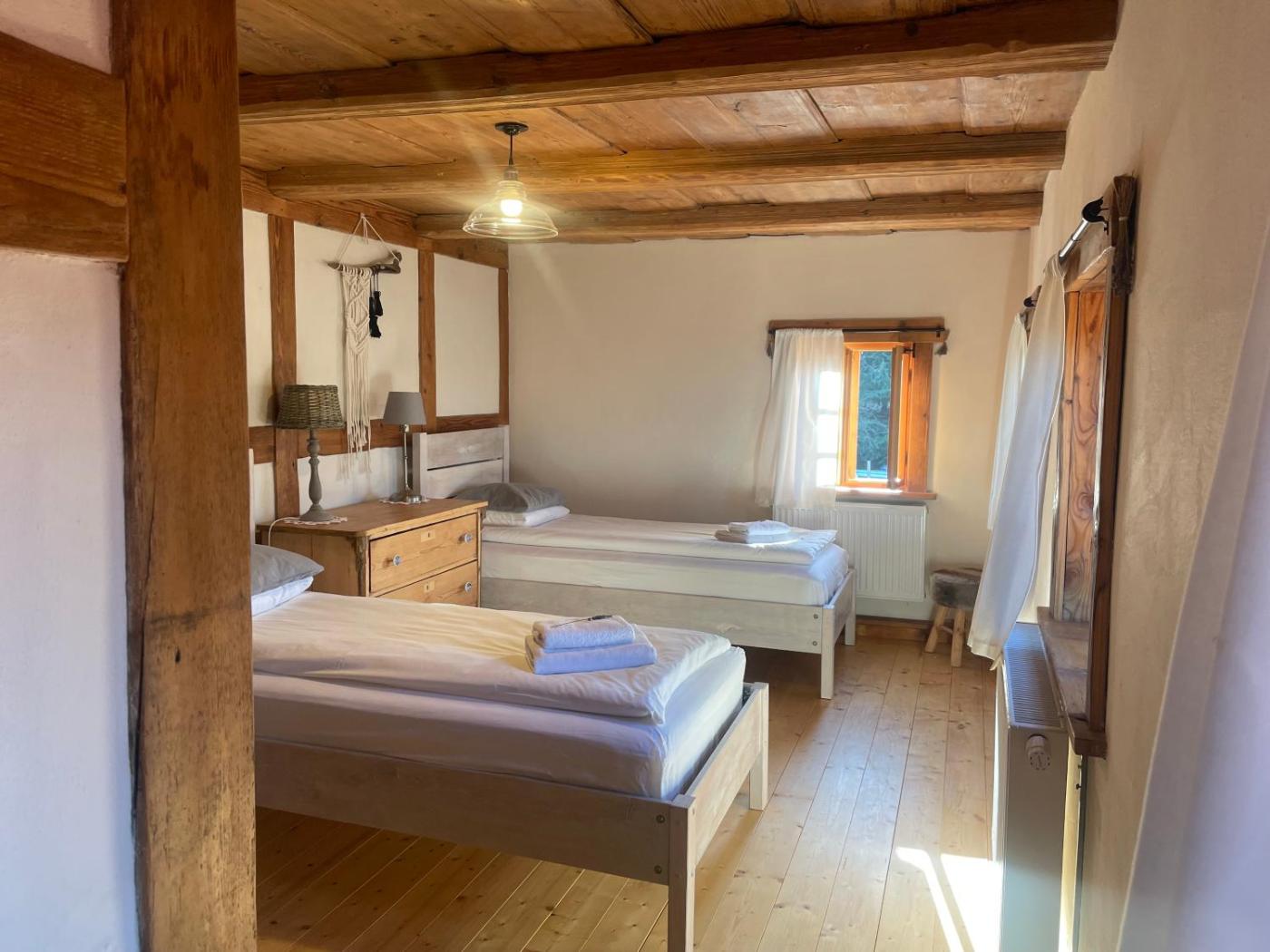Pokój z 2 łóżkami pojedynczymi. Guests will find a stovetop, a refrigerator, kitchenware and a microwave in the fully equipped kitchen. The twin room also includes a barbecue. The twin room features a private entrance, a tea and coffee maker, as well as a private bathroom boasting a shower and a hairdryer. The unit has 2 beds. Pokój z 2 łóżkami pojedynczymi - 2 osobowy. Powierzchnia pokoju ok.: 20 mkw.