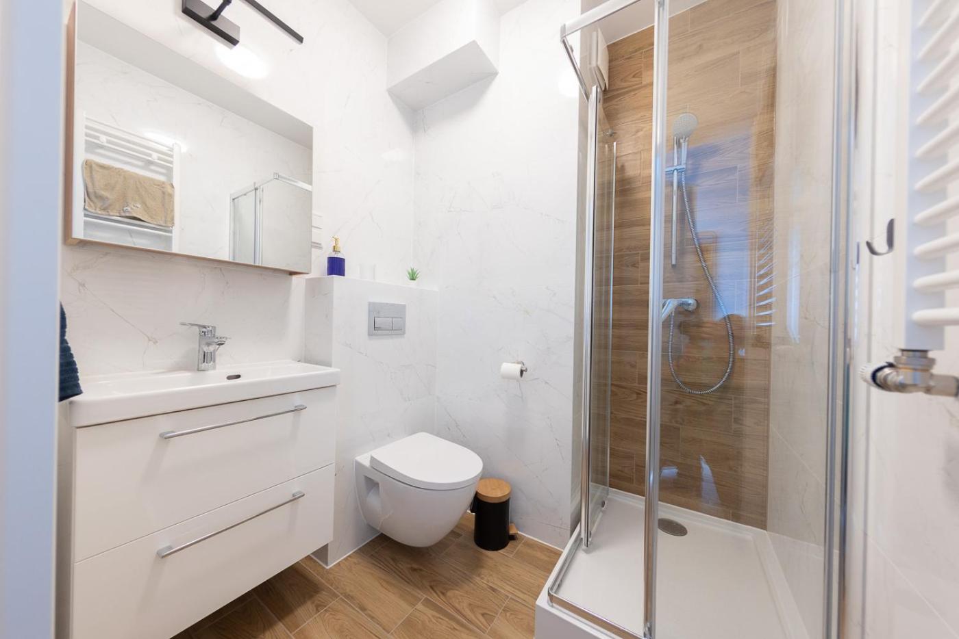 Apartament z 1 sypialnią. This apartment comes with 1 living room, 1 separate bedroom and 1 bathroom with a shower and a hairdryer. In the well-fitted kitchenette, guests will find a stovetop, a refrigerator, kitchenware and an oven. Boasting a balcony with city views, this apartment also features a washing machine and a flat-screen TV with cable channels. The unit has 2 beds. Apartament - 4 osobowy. Powierzchnia pokoju ok.: 32 mkw.