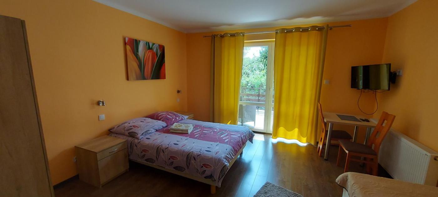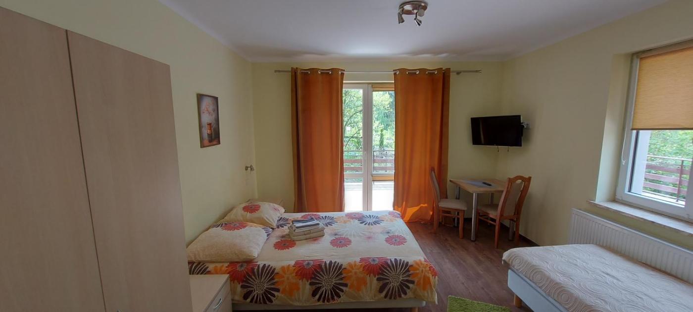 Pokój Trzyosobowy z prywatną łazienką poza pokojem. Guests will find a refrigerator, a dishwasher, kitchenware and an oven in the kitchen. The triple room also includes a barbecue. The triple room features air conditioning, a washing machine, a terrace with garden views as well as a private bathroom boasting a shower. The unit has 2 beds. Pokój Trzyosobowy - 3 osobowy. Powierzchnia pokoju ok.: 20 mkw. ;